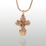 This beautiful stylised Bronze Cross is a stunning way to remember your loved one. Set with white zirconium stones creating a wonderful contrast against the rose gold finish, this delicate pendant is a wonderful keepsake to forever hold your memories.