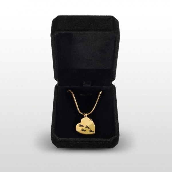 This beautiful gold pendant has been set with black footprints. This delicate design stunningly encapsulates the journey that you have taken with your loved one and that they will forever be a part of your journey through life.