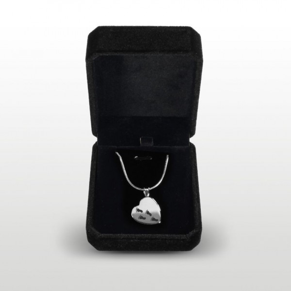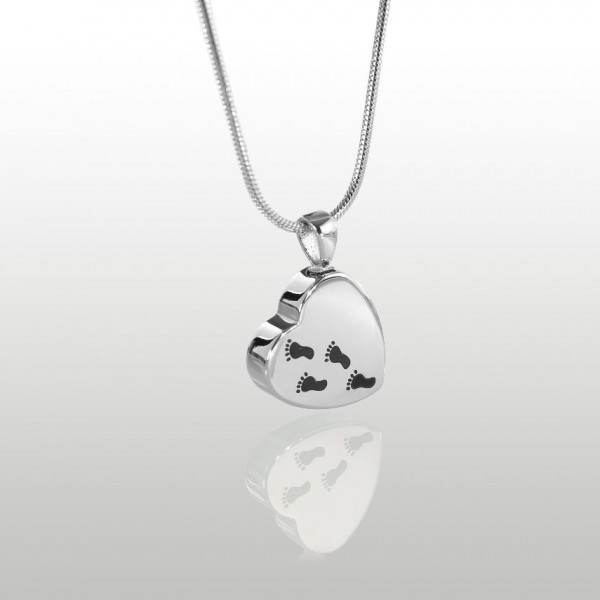 This beautiful silver pendant has been set with black footprints. This delicate design stunningly encapsulates the journey that you have taken with your loved one and that they will forever be a part of your journey through life.