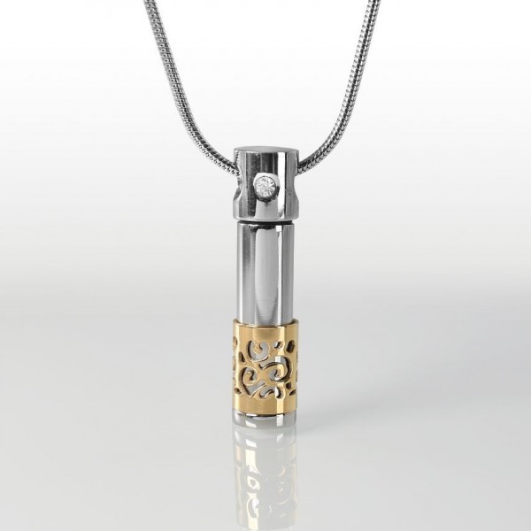 Losing a loved one is a painful experience and we want to hold our memories of their lives close. This cremation pendant is designed with a beautiful golden filigree patterned ring and white zirconium to hold the ashes of your dearly departed. It will securely hold your loved one forever.