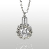 This gorgeous cremation pendant has been carefully designed taking inspiration from classic jewellery. The stunning white stone has been set with a border of brilliant white zirconia. This piece is a wonderful and tasteful way to hold your dearest loved one and the memories that you shared.